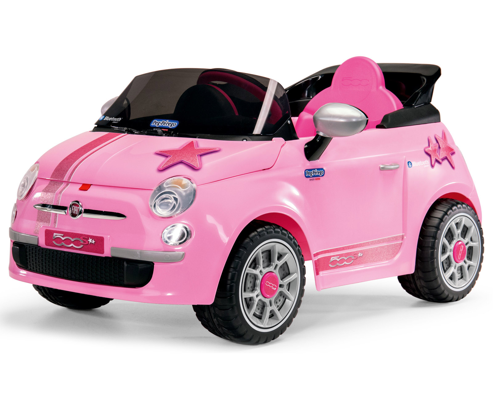 Der detailgetreu nachgebaute Fiat 500 ist mit viel Rosa und einem Hauch von Brillanten genau das Richtige für Glamour-Girls. Der Fiat 500 Star Remote Control erreicht eine Höchstgeschwindigkeit von zirka 4 km/h und ist auch in der Ausführung Fiat 500 S Remote Control erhältlich.